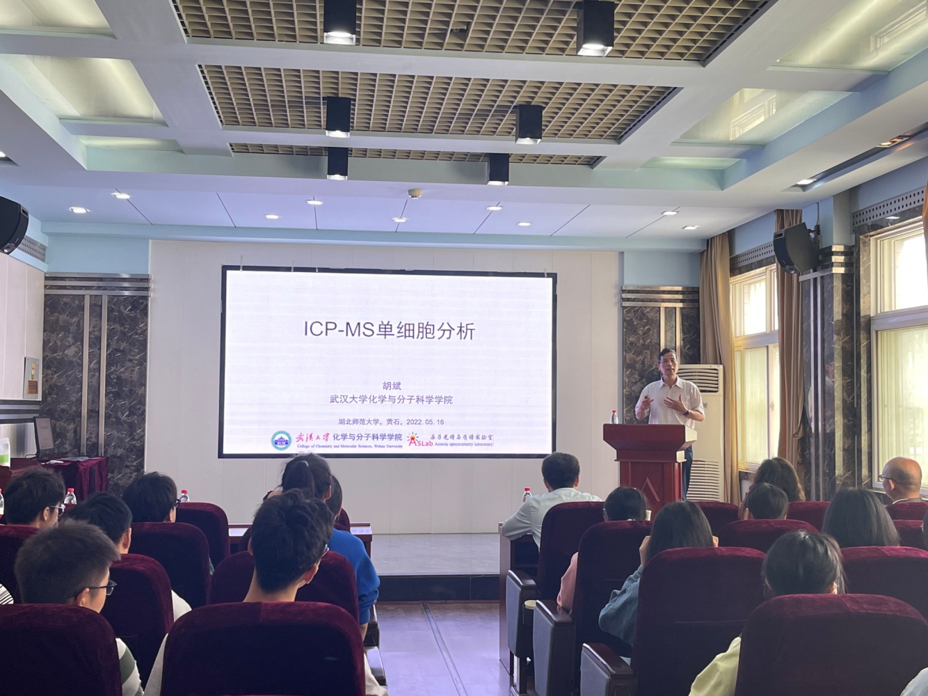 2022年5月16日,武汉大学博士生导师胡斌教授应邀来我院进行学术交流,并在污染物分析与资源化技术湖北省重点实验室学术报告厅作了题为“ICP-MS单细胞分析”的学术报告。