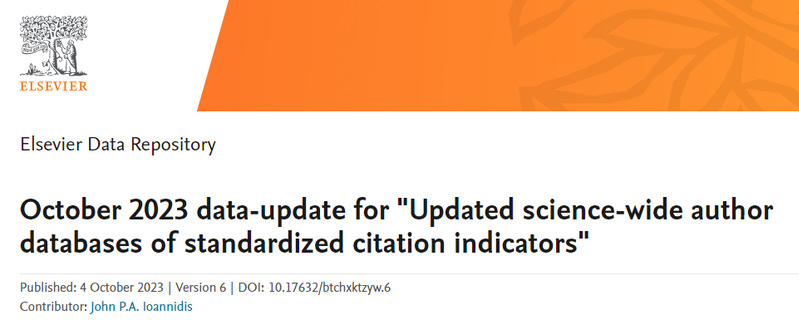 近日,斯坦福大学John P. A. Ioannidis教授团队发布了全球前2%顶尖科学家榜单,并在Elsevier旗下Mendeley Data发布(October 2023 data-update for Updated science-wide author databases of standardized citation indicators)。本次统计数据时间节点为1960-2023年,我院王国宏教授入选2023年度全球前2%顶尖科学家榜单。