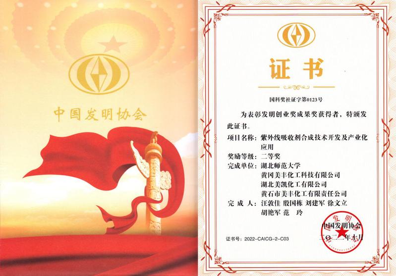 合作企业长期与我院联合开展紫外线吸收剂技术研发与应用,近年来在我院相继建成“校企联合紫外线吸收剂工程研究中心”与“校企合作微通道连续反应技术联合实验室”。合作企业获批国家高新技术企业2家,建成湖北省企业技术中心1个,2022年入选第四批国家级专精特新“小巨人”企业,紫外线吸收剂系列产品获得美国食品药品监督管理局(FDA)认证。