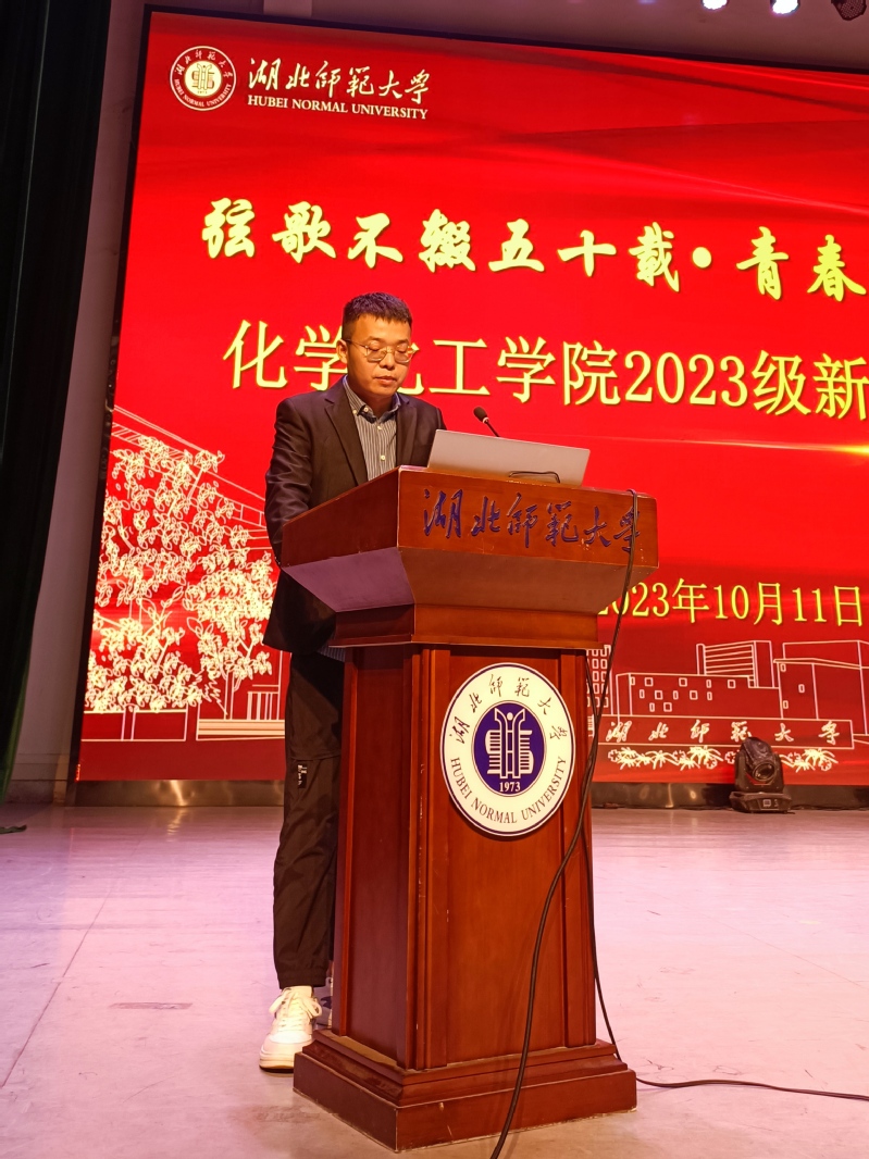 随后,教师代表刘郑发言。他说,对于在坐的新同学们来说,走进湖北师范大学,是人生的一个起点,同时也是决定未来的关键一步。希望将目光放长远,注重细节,在大学中打好学习基础,相信同学们在未来的大学四年中能够学会做人、学会做事、学会生活、学会学习、学会合作。