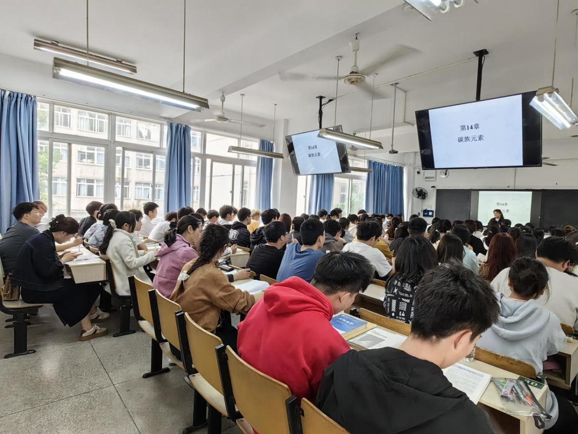 4月1日10:00至10:45,无机化学教研室杜叶双博士在教育大楼1206教室进行了示范课《无机化学(二)》教学,授课班级为化学23D05和23D06班。课堂上杜老师运用PPT+学习通混合式教学手段,主要围绕碳族元素包含碳单质及其化合物进行了系统的讲解,并进行了针对性的练习和归纳。课后,参加观摩学习的各位老师与杜老师进行了交流研讨,老师们积极分享教学心得和体会,相互学习借鉴教学经验和方法,现场氛围融洽。