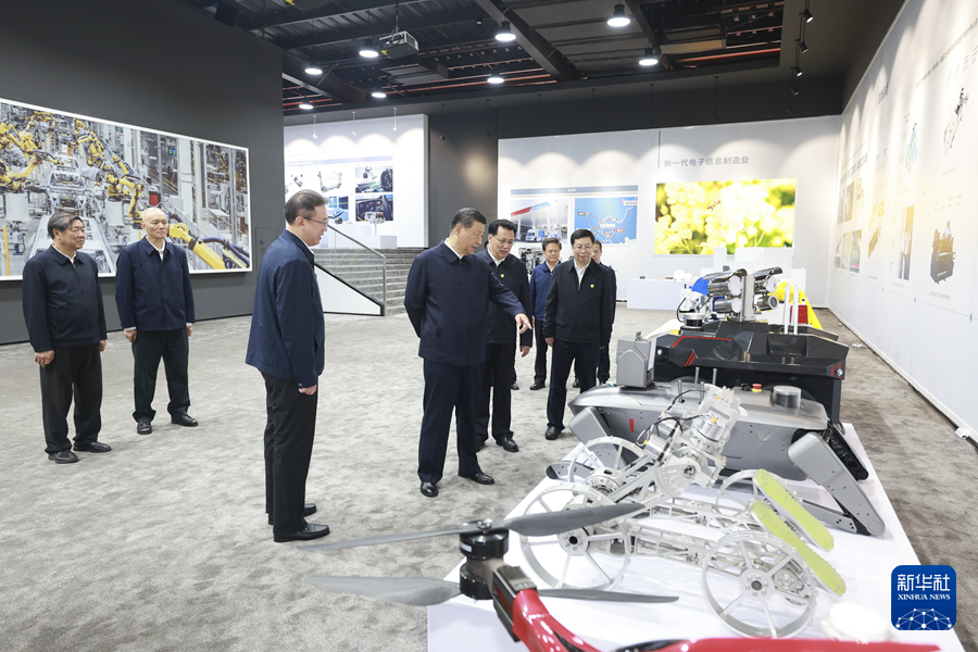 4月22日至24日,中共中央总书记、国家主席、中央军委主席习近平在重庆考察。这是22日下午,习近平参观重庆科技创新和产业发展成果展示。新华社记者 王晔 摄