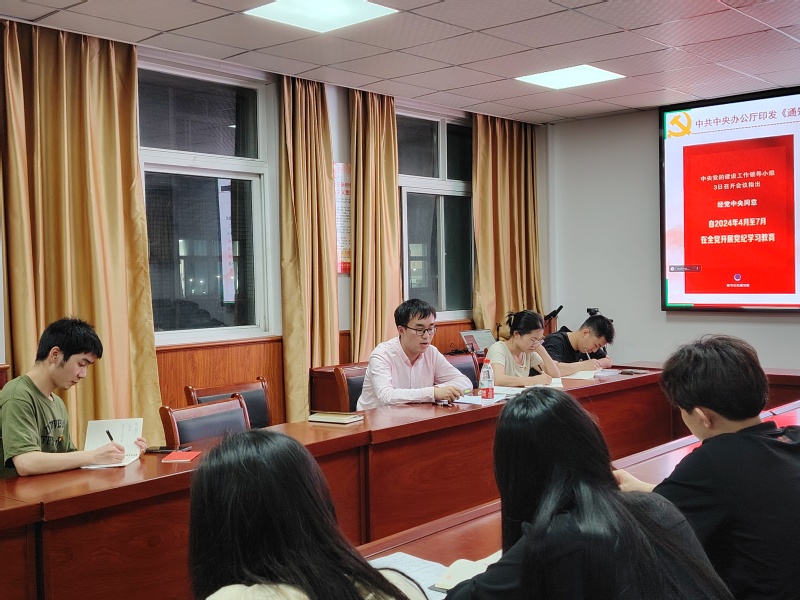 党日中,各支部传达学习了学校党委常委会扩大会议暨党的建设工作领导小组会议精神,组织学了学院党委《关于在全院党员中开展党纪学习教育的工作方案》有关内容。要求全体党员要深刻认识开展党纪学习教育的重要意义和目标要求,进一步强化纪律意识、加强自我约束,始终做到忠诚干净担当,切实把思想和行动统一到党中央决策部署上来,高质量推进党纪学习教育。各支部根据安排领学了《中国共产党纪律处分条例》第一章内容,郭先哲同志为学生第一党支部讲授题为《与时俱进完善纪律规范,为新征程推进全面从严治党提供坚强纪律保障》的党课。