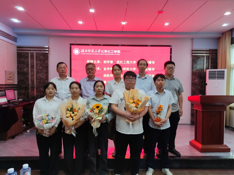 有机化学组论文答辩于5月18日下午在重点实验室学术报告厅举行。武汉工程大学化工与制药学院教授、博士生导师胡学雷担任答辩委员会主席,我院金传明、胡胜利、黄小欢3位硕士研究生导师担任委员。2021级硕士研究生王永凤、帅海娟、李黎、韩瑛、谭天5名学生参加答辩。
