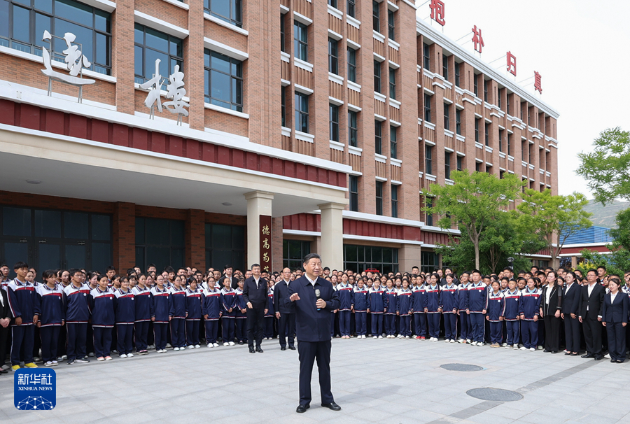 6月18日至19日,中共中央总书记、国家主席、中央军委主席习近平在青海考察。这是18日下午,习近平在果洛西宁民族中学考察时,同师生们亲切交流。新华社记者 谢环驰 摄