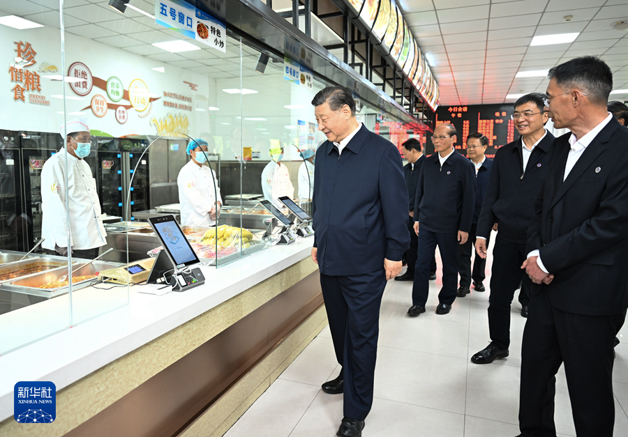 6月18日至19日,中共中央总书记、国家主席、中央军委主席习近平在青海考察。这是18日下午,习近平在果洛西宁民族中学食堂察看学生就餐条件。新华社记者 谢环驰 摄