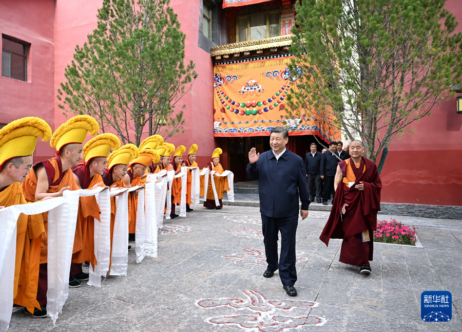 6月18日至19日,中共中央总书记、国家主席、中央军委主席习近平在青海考察。这是18日下午,习近平在位于西宁市城中区的宏觉寺考察。新华社记者 翟健岚 摄