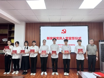 为庆祝中国共产党成立103周年,重温党的光辉历程、传承党的优良传统,激励党员坚定理想信念,加强党性教育,增强荣誉感和归属感,7月1日下午,学院党委在五楼会议室举行2024年新发展党员入党宣誓仪式。院党委书记罗鸿飞、党委副书记吴天真、学生党支部书记和上半年新发展的16名党员参加入党宣誓仪式,部分入党积极分子代表列席。仪式由辅导员郭先哲主持。