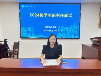 为加强新生的教育管理,培养优良班风学风,选拔一批政治素养好、管理能力强的学生骨干来担任2024级学生班主任工作,我院于6月28日下午在化学大楼三楼会议室举行了学班面试选拔,辅导员谢苗苗、龙琴、李海泉、郭先哲担任评委。