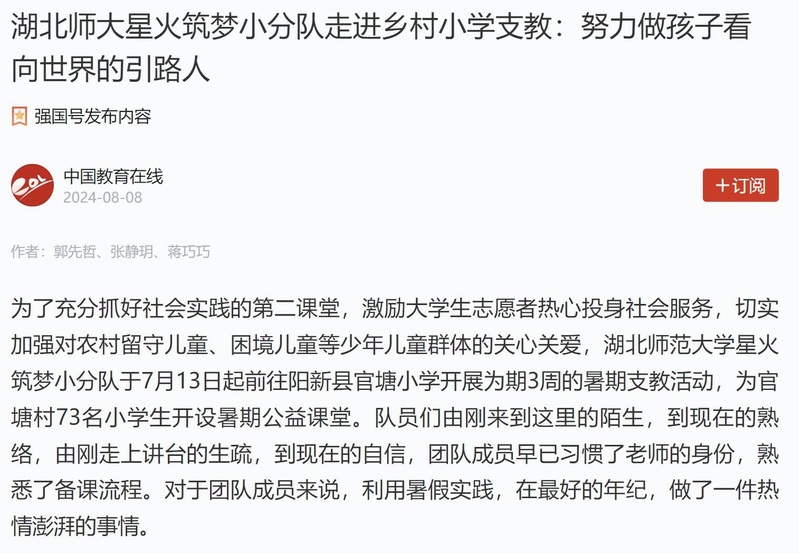“学习强国”等平台报道我院“星火筑梦小分队”暑期支教活动