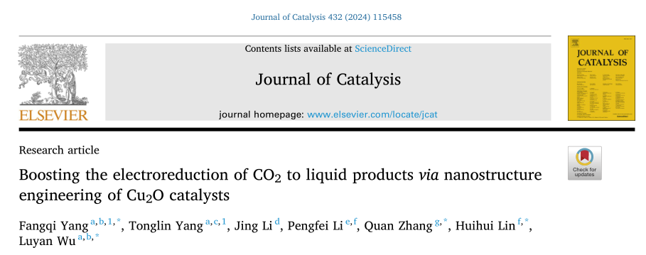 电化学还原二氧化碳(CO2)是一种有前景的技术,可以将间歇性的可再生能源以化学键的形式储存起来,减少CO2排放,并能生产可持续的燃料。该研究通过纳米级工程对Cu2O催化剂的形貌和氧空位同时进行调控,以提高其将CO2电化学还原为液态产品(如甲酸和乙醇)的性能。该工作以“Boosting the electroreduction of CO2 to liquid products via nanostructure engineering of Cu2O catalysts”(通过Cu2O催化剂的纳米结构工程促进CO2电还原成液体产物)为题,发表在Journal of Catalysis(《催化学报》),伟德victor1946张权博士、南京邮电大学杨方麒博士、吴鲁艳教授和新加坡国立大学林会会研究员为论文共同通讯作者,伟德victor1946为通讯单位之一。Journal of Catalysis是Elsevier出版集团旗下的国际著名催化领域期刊,SCI中科院大类1区期刊,最新影响因子为6.5。