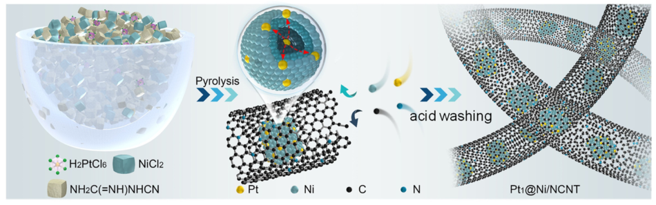 Pt1@Ni/NCNT单原子合金催化剂合成示意图