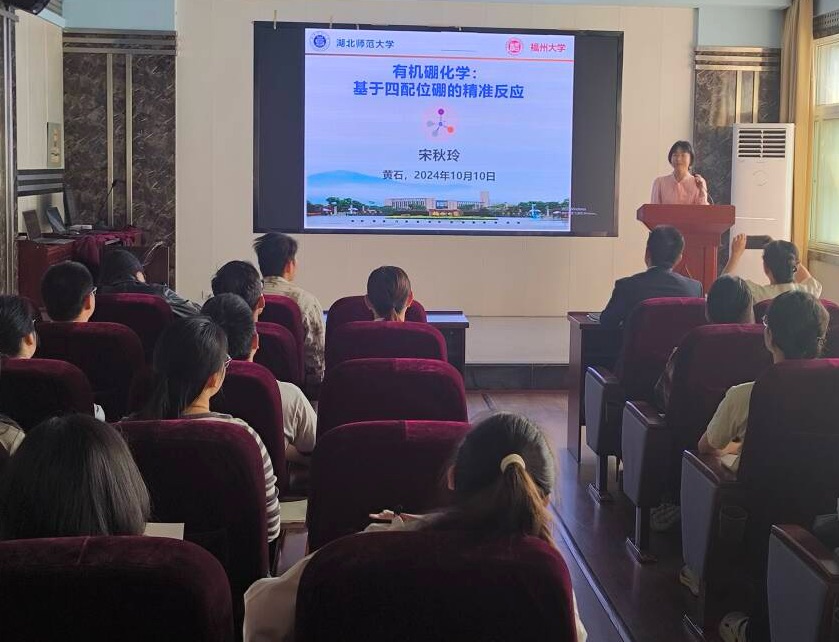 10月10日,应学院邀请,福州大学化学学院博士生导师、教育部长江学者特聘教授、国家特聘专家、福建省“百人计划”获得者宋秋玲教授访问我院,并在重点实验室报告厅作题为“有机硼化学——基于四配位硼的精准反应”的学术报告,我院教师和部分研究生现场聆听。报告会由院长殷国栋主持。