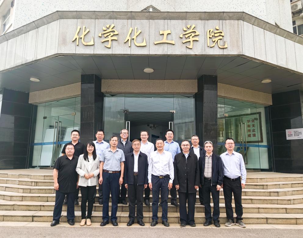 评审会开始前,校长雷儒金与全体专家在化学大楼前合影留念。