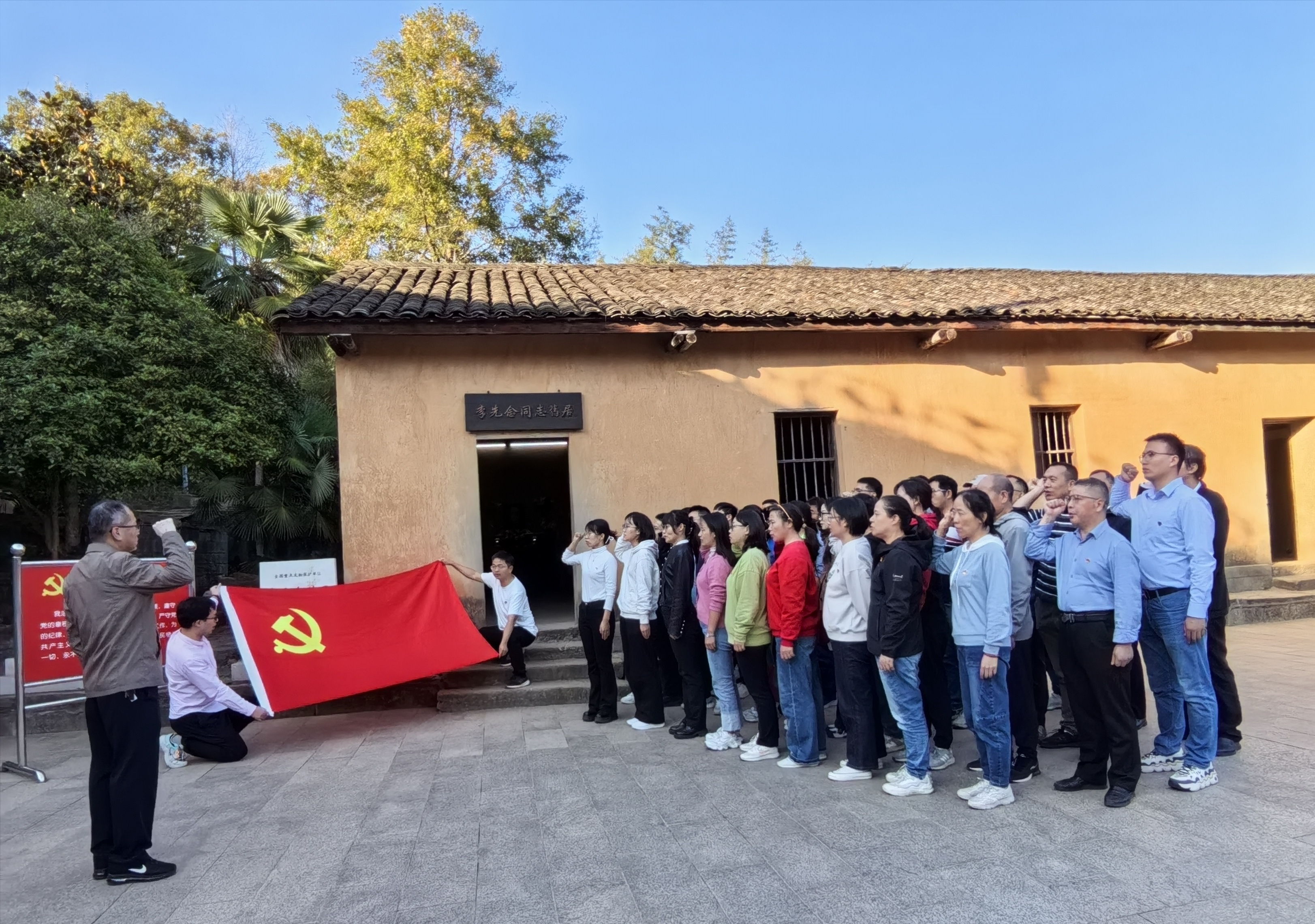 正值全省上下掀起学习宣传贯彻习近平总书记考察湖北重要讲话精神高潮之际,为深刻领会、坚决贯彻习近平总书记关于“在加强文化资源保护和推动文化创新发展上担当使命”的重要要求,强化教职工思想政治引领和价值观塑造,大力弘扬大别山精神,11月10日,学院党委组织教师第一、第二党支部党员赴红安县红色教育基地开展“缅怀革命先烈 追寻红色记忆”主题党日,组织党外教师瞻仰革命旧址,缅怀英雄业绩,接受爱国主义教育和革命精神洗礼。