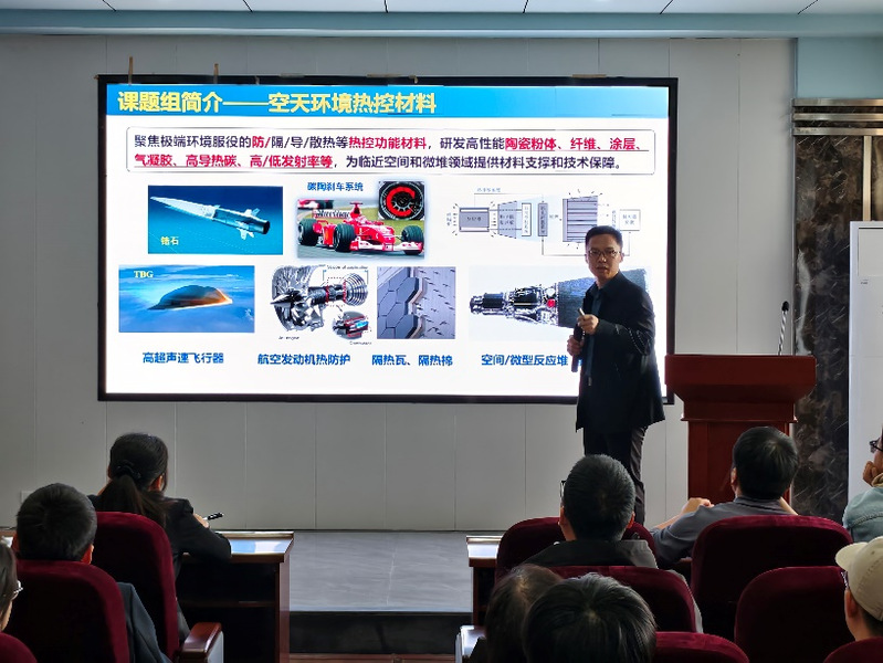 黄竹林研究员首先从空天环境热控材料出发,概述了防热陶瓷及涂层在航天、军事领域的重要作用,随后解析了硼化物超高温陶瓷粉体的研究现状及其面临的关键科学问题与挑战。在此基础上,详细介绍了该课题组实现高纯、高稳定性以及强隔热陶瓷粉体的性能调控策略、工程化制备以及高熵陶瓷等热点研究工作。报告最后,黄竹林研究员介绍了中国科学院合肥物质科学研究院的历史由来、科研进展、人才培养与研究生招生情况,鼓励我院研究生去合肥科学岛深造。