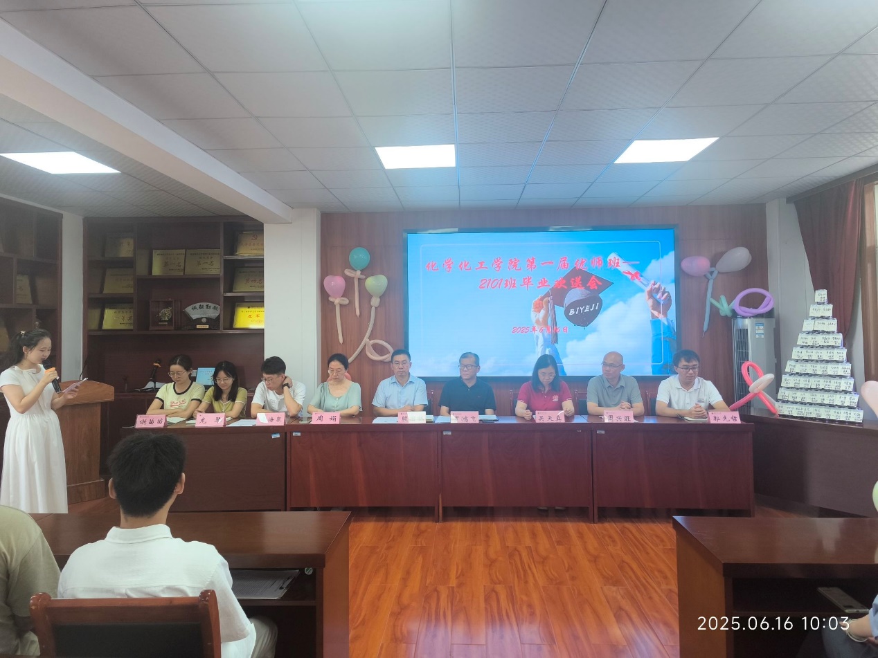 6月16日上午,化学大楼五楼会议室内温情洋溢,学院为首届“优师计划”毕业生举行毕业欢送会。党委书记罗鸿飞、院长殷国栋、副书记吴天真、副院长周兴旺出席并讲话,共同为“优师计划”毕业生送上毕业祝福。