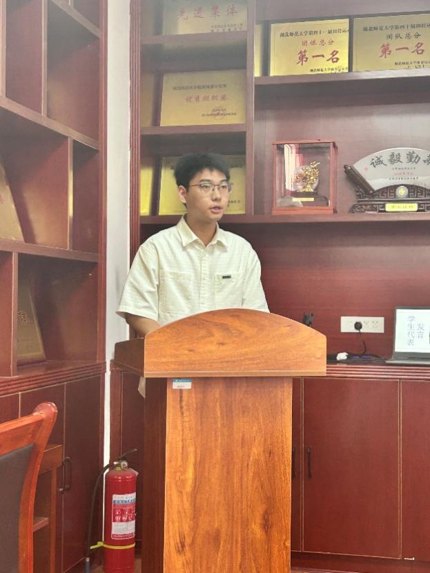 学院领导在讲话中对全体“优师计划”毕业生大学期间充实的学习生活表示肯定和赞扬,纷纷为毕业生送上毕业祝福并提出殷切期望。罗鸿飞以言简意宏的“横渠四句”勉励大家厚植家国情怀,他希望同学们践行教育家精神,努力成为一名受人尊敬的人民老师;以建设教育强国和乡村全面振兴为己任,立志成为在教师岗位上展现家国担当的时代新人;立足平凡岗位,做一个家庭幸福、桃李天下的普通人。殷国栋希望大家坚守初心,永葆教育情怀;增强本领,勇担育人重任;扎根基层,传承湖师精神。吴天真希望大家牢记祝福嘱托,坚守教育初心,不断精进本领,努力成为“四有”好老师。周兴旺希望同学们在教育一线践行育人使命,用仁爱之心与育人智慧为乡村教育注入活力。寥寥数语,充满着学院对首届“优师种子”的深切祝福与厚重期许。
