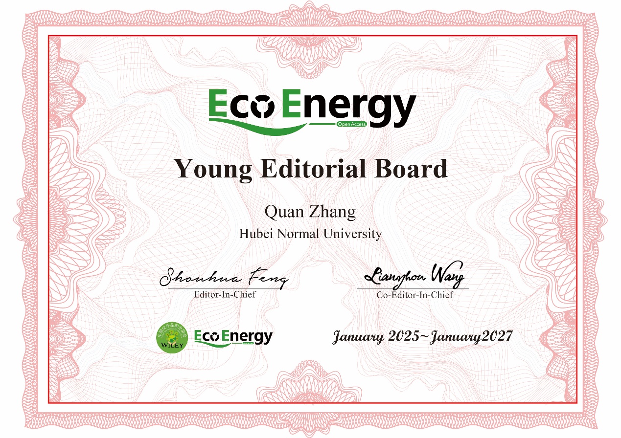 EcoEnergy坚持严格的同行评议标准,推动高质量研究成果的快速发表,已成为能源与环境科学领域的重要学术平台。此次我院青年教师的加入,将进一步促进我院与国际学术界的交流合作,助力相关学科发展。