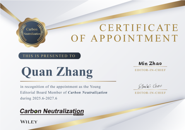 张权博士受聘担任Carbon Neutralization和EcoEnergy期刊青年编委