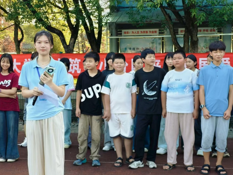 7月15日清晨,朝阳为排市镇初级中学操场镀上暖金色光芒,本周升旗仪式在此如期举行。本次活动由我院星火筑梦实践队组织,实践队队长詹欣怡担任主持人,全体师生以庄重的神情参与其中,围绕“安全”与“成长”两大主题,共同强化安全防范意识、凝聚主动学习共识。