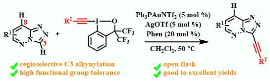 区域选择性金/银催化三唑并哒嗪的C3-H炔基化反应