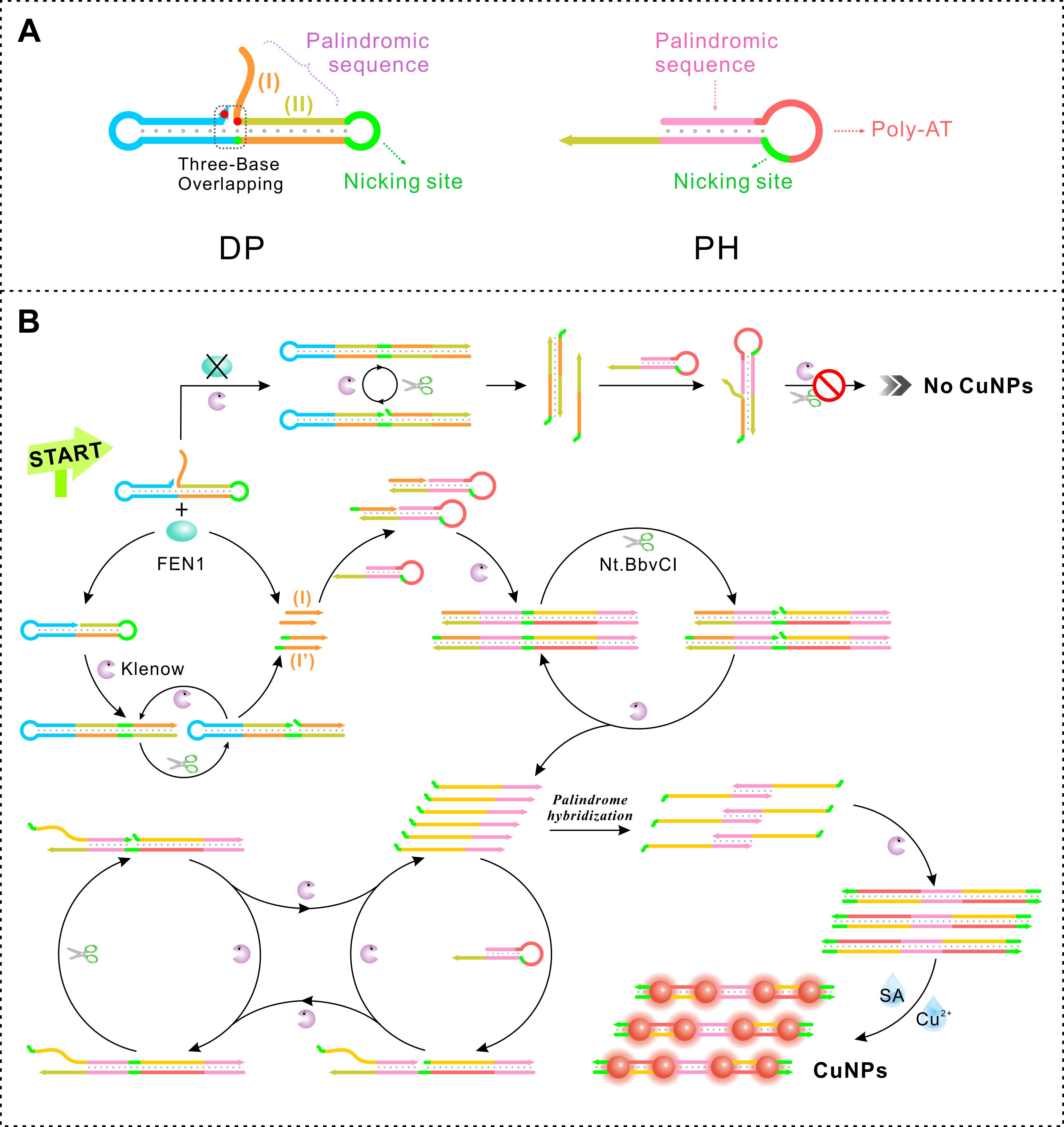 2. Palindrome design-guided “single-flap-double-duties” and “dual-enzymes-quadruple-cycles” enabled nano-signal amplification for customized FEN1 sensing