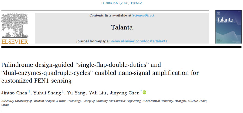 7月,Talanta(《塔兰塔》)在线发表该团队研究成果,论文题为“Palindrome design-guided “single-flap-double-duties” and “dual-enzymes-quadruple-cycles” enabled nano-signal amplification for customized FEN1 sensing”(《回文设计指导“单瓣双功能”与“双酶四循环”赋能纳米信号放大用于定制化FEN1传感》)。我院2022级硕士研究生陈金涛和2023级硕士研究生尚钰慧为论文共同第一作者,陈金阳副教授为论文唯一通讯作者,伟德victor1946为论文唯一通讯单位。Talanta是Elsevier出版社旗下分析化学领域知名期刊、中科院SCI化学大类二区TOP期刊,最新影响因子为6.1。