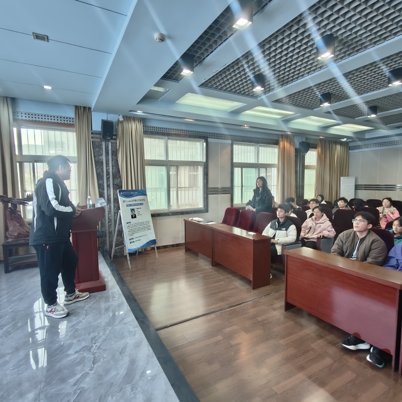韩春雨老师首先以在德国海德堡大学攻读博士期间的经历为切入点,生动讲述了海外科研生活中的学术氛围与文化体验,迅速拉近了与同学们的距离,也让大家对顶尖学府的科研生活有了直观了解。在围绕“从0到1”科研启航的主题分享中,他系统阐述了研究生应从“知识接受者”向“问题探索者”转变的关键路径,强调主动构建知识框架、培养独立科研思维与学术判断力的重要性。韩老师还结合学院实际,详细解读了国家奖学金、学业奖学金的评审标准与申请要点,鼓励同学们早规划、勤积累,在学术道路上稳步前行。