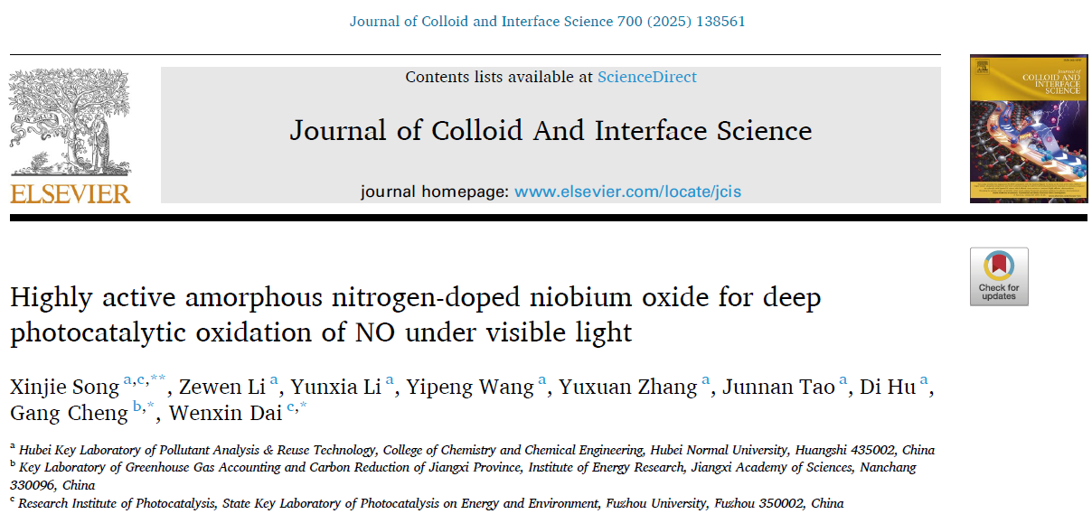 [成果21] 宋昕杰:高活性无定形氮掺杂五氧化二铌在可见光下深度光催化氧化NO