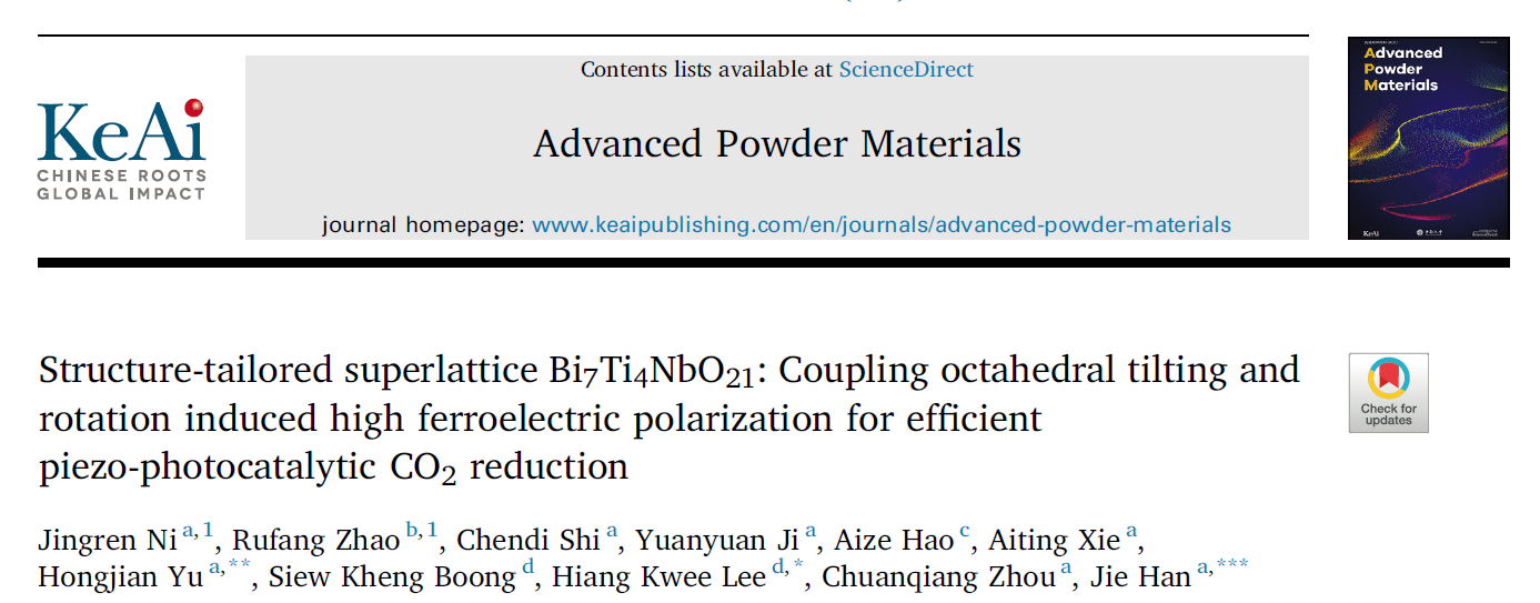 该成果于2025年4月发表于中科院SCI大类一区Advanced Powder Materials(IF:28.6),扬州大学倪敬仁博士为论文第一作者,赵茹芳博士为共同第一作者,扬州大学于洪鉴教授、韩杰教授以及南洋理工大学Hiang Kwee Lee教授为论文共同通讯作者,伟德victor1946为论文第二通讯单位。