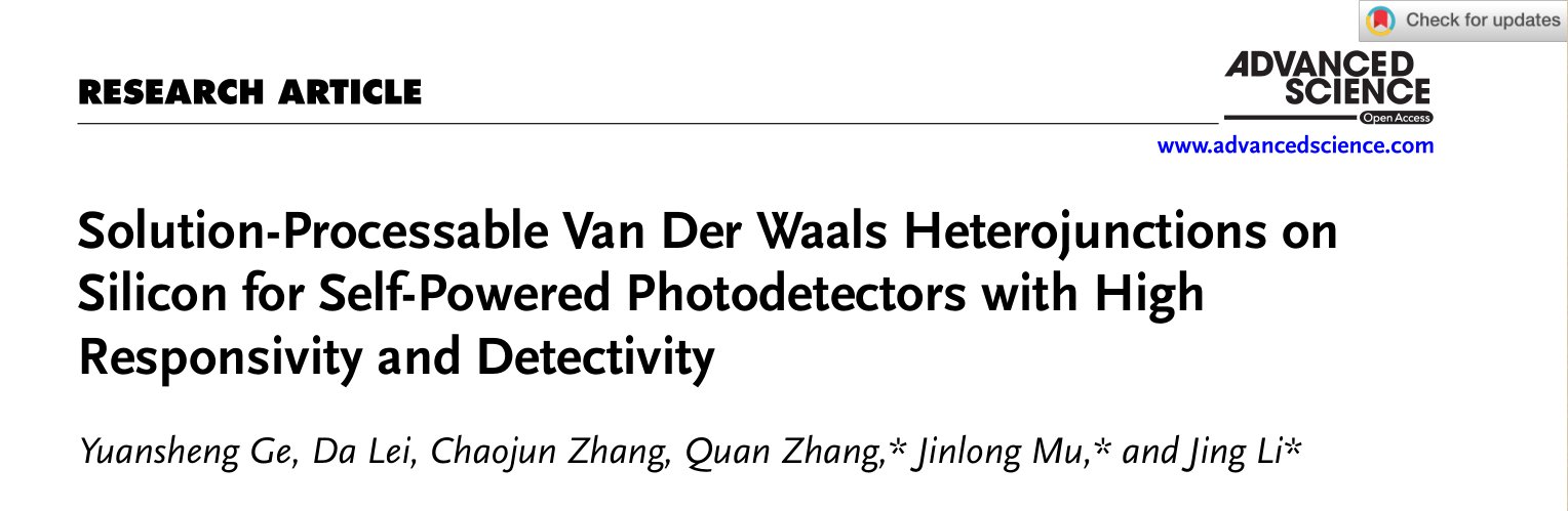 [成果6] 张权:基于溶液处理的范德华异质结硅基用于高响应度和高探测度自供电光探测器
