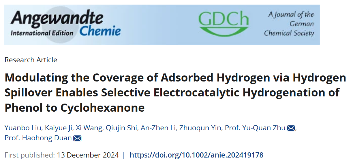 [成果33] 朱玉荃:利用氢溢流效应实现电催化苯酚选择性加氢制环己酮