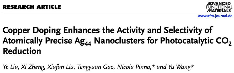 [成果17] 刘野:通过在原子级精确Ag44纳米簇中引入Cu原子调控电荷分布,实现CO2光还原活性与CH4选择性的显著提升