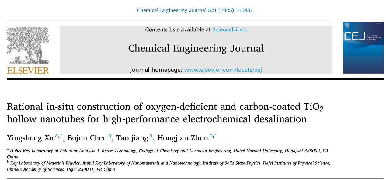 [成果19] 徐应生:原位构筑高性能碳包覆氧空位TiO2中空纳米管电极用于高效脱盐