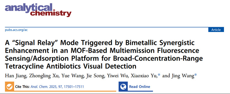 [成果22] 余筱筱:基于双金属协同“信号接力”模式的MOF基荧光传感/吸附平台用于可视化检测四环素类抗生素