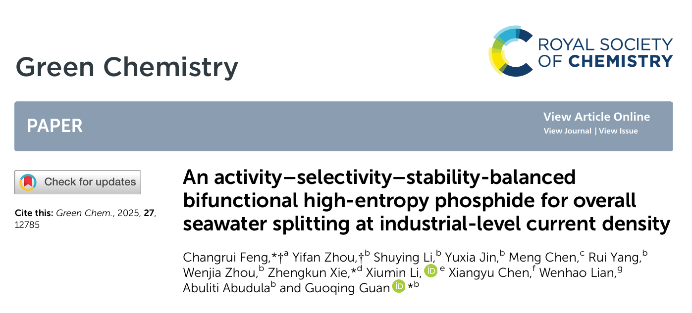 该成果于2025年9月发表于中科院SCI大类一区Green Chemistry(IF:9.2),冯长瑞博士为论文第一作者兼通讯作者,郑州大学谢正坤副教授、日本弘前大学官国清教授为论文共同通讯作者,日本弘前大学周奕帆博士为共同第一作者,伟德victor1946为论文第一通讯单位。