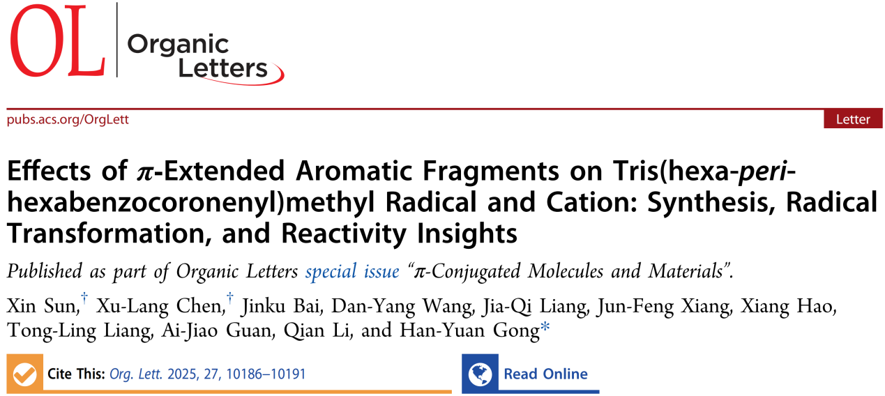 [成果40] 陈绪朗:π-共轭扩展芳香片段对三(六并六苯蒄基)甲基自由基及其阳离子的影响:合成、自由基转化与反应性研究