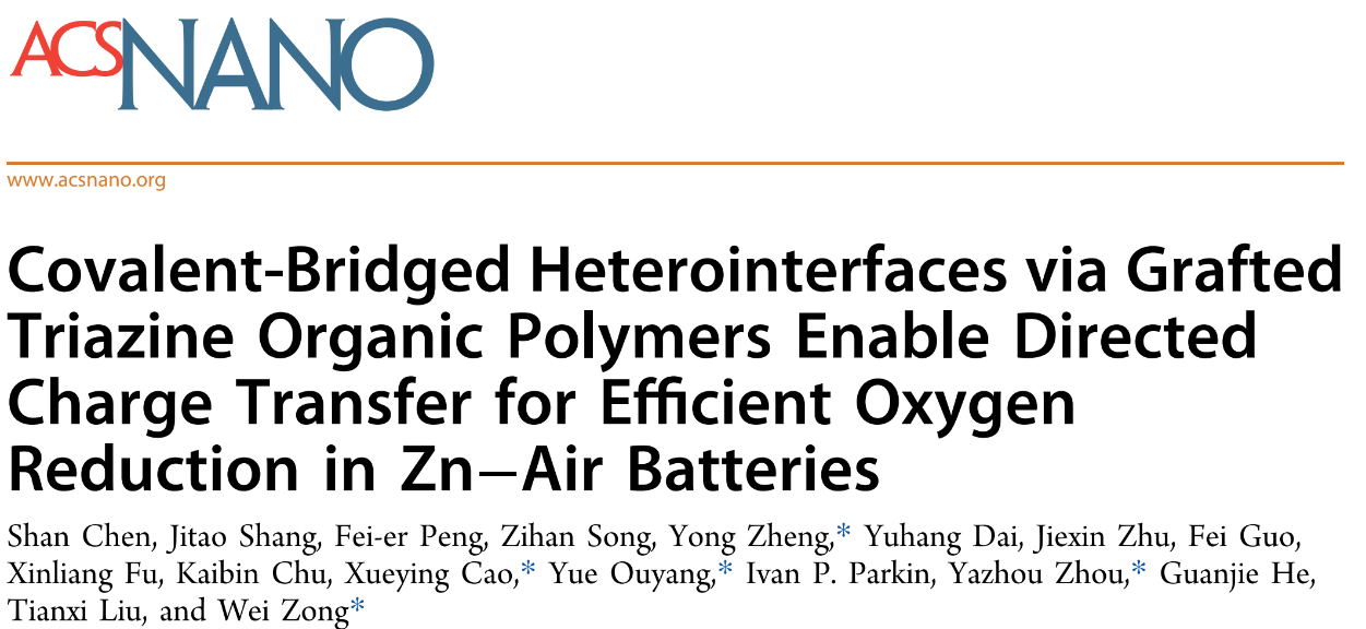 [成果27] 陈山:共价桥连异质界面增强氧还原反应电子定向转移用于锌-空气电池