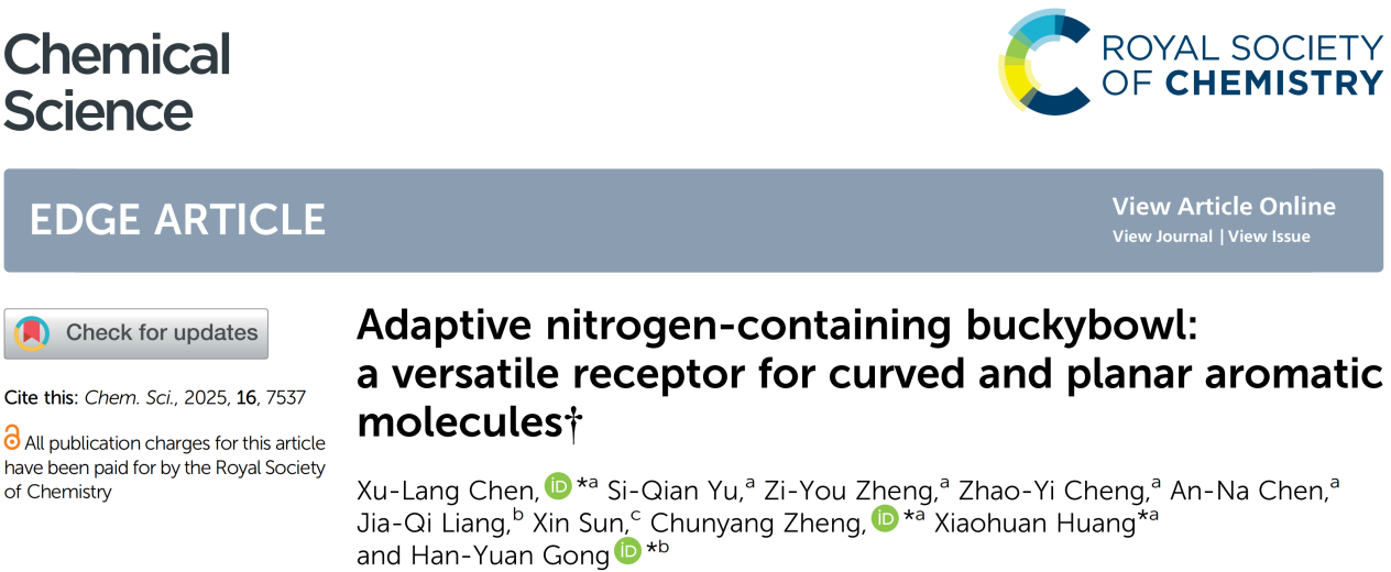 该成果于2025年3月发表于中科院SCI大类一区、自然指数期刊Chemical Science(IF:7.4),陈绪朗博士为论文第一作者兼通讯作者,郑春阳副教授、黄小欢教授和北京师范大学龚汉元教授为论文共同通讯作者,伟德victor1946为论文第一通讯单位。