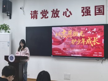 在分享环节,五位同学依次登台,从不同维度呈现了社会实践的丰硕成果与深刻思考。詹欣怡动情讲述了星火筑梦实践队暑期支教的点滴,在乡村孩子们质朴的笑容中感悟奉献的真谛;齐鑫雨与聂晴分别聚焦女大学生卫生巾安全标准的认知现状与高校男生的对此议题的看法,以调研数据回应现实关切,展现了敏锐的问题意识与社会洞察力;张雨欣通过管护童心志愿服务队的成长故事,诠释了陪伴与守护的双向奔赴;胡佳欣则从理论高度剖析志愿服务对价值观内化的深层影响,探讨实践教育在青年成长中的独特价值。五段分享或温情、或理性,既有脚踏实地的躬身实践,亦有仰望星空的理论求索,共同勾勒出bv伟德国际1946学子在社会大课堂中锤炼本领、涵养情怀的生动图景。