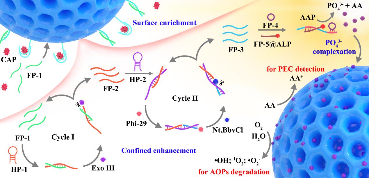 2. Hierarchical nanoplatform for integrated detection and degradation of chloramphenicol: surface enrichment, confined enhancement and phosphate complexation