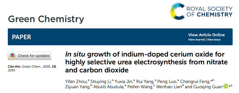 近日,分析化学教研室冯长瑞博士在国际知名期刊Green Chemistry(《绿色化学》)上发表电化学尿素合成最新研究成果。论文题为“In situ growth of indium-doped cerium oxide for highly selective urea electrosynthesis from nitrate and carbon dioxide”(原位生长铟掺杂铈氧化物用于硝酸盐和二氧化碳共还原高选择性合成尿素)。冯长瑞博士、日本弘前大学官国清教授为论文共同通讯作者,日本弘前大学周奕帆博士为第一作者,伟德victor1946为论文第二通讯单位。Green Chemistry是由Royal Society of Chemistry(英国皇家化学会)出版的国际知名学术期刊,创刊于1999年,该期刊致力于发表有关开发替代绿色和可持续技术的创新研究,为SCI中科院大类一区期刊,最新影响因子为9.2。